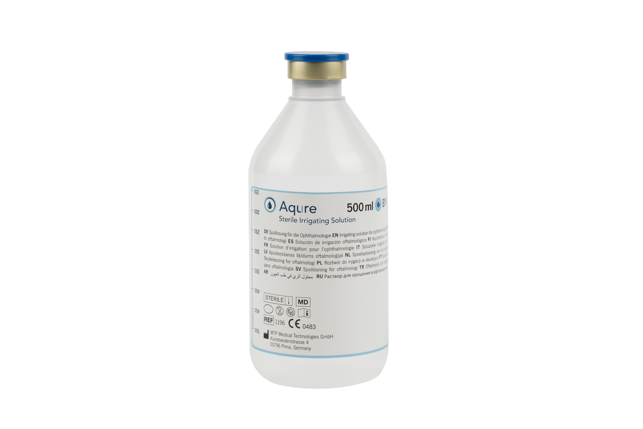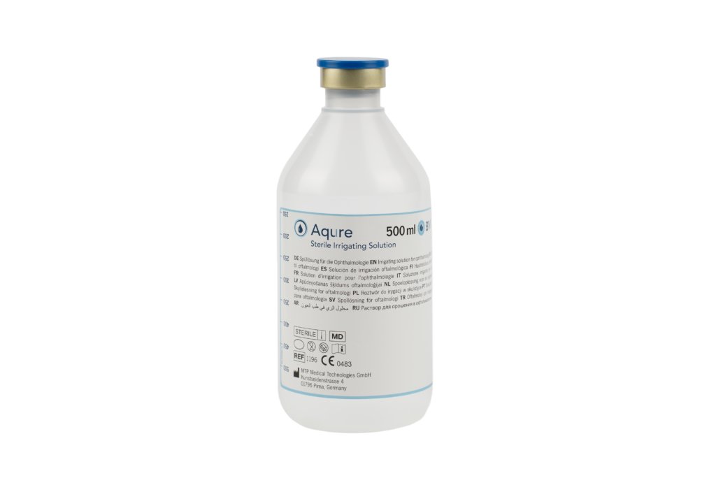 Aqure™ 20 ml (flacon plastique) et Aqure™ 500 ml (disponible en flacons en verre ou en plastique) sont des solutions d’irrigation stériles et physiologiques destinées aux procédures ophtalmiques. Elles sont indiquées pour l’irrigation de la chambre antérieure lors de la chirurgie de la cataracte, ainsi que pour d’autres procédures intraoculaires ou extraoculaires, y compris des applications thérapeutiques ou diagnostiques nécessitant une irrigation ou le maintien de l’humidité.